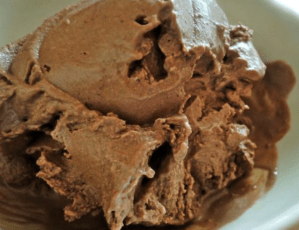 Приготовление: в блендере смешать воду, кэроб, ваниль и корицу. Постепенно добавлять по одному финику и авокадо. Разбавить питьевой водой, если очень густо. Подавать с мороженым из бананов.